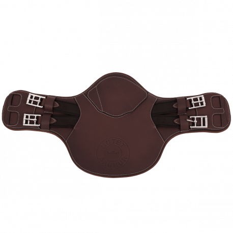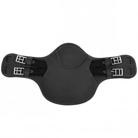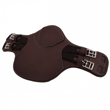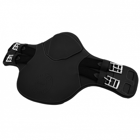 The BUTET embossed cross-country belly guard girth comes with a central snap hook and its magnetic snap hook cover, a D-ring and two elastic straps on either side. The cross-country belly guard girth is recommended for outdoor work and cross-country riding. Compatible with our mono-flap saddles.